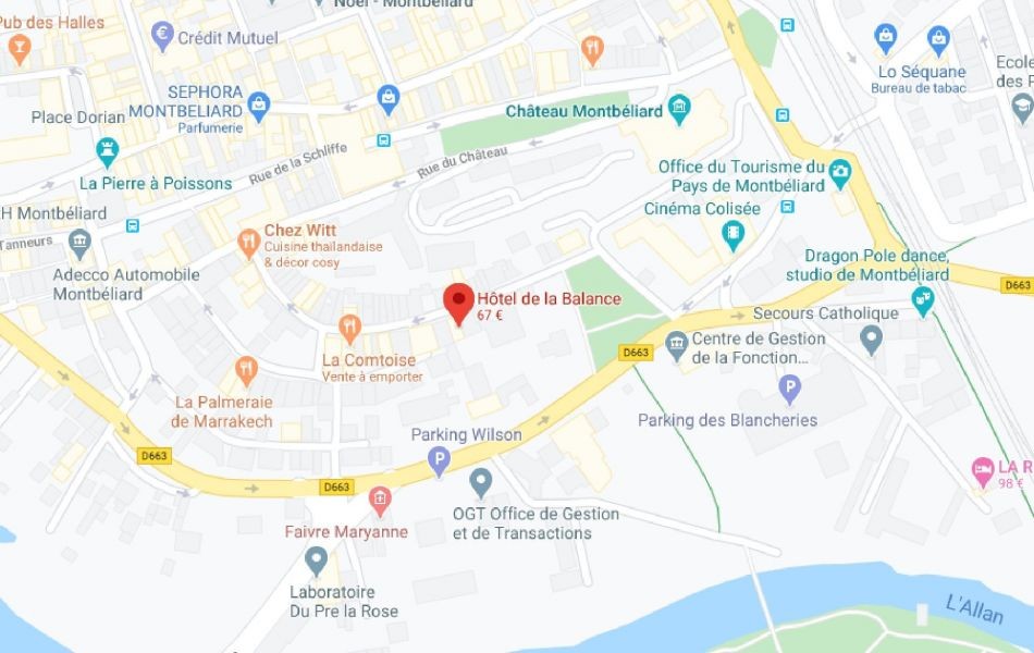 Hôtel La Balance40 rue de Belfort25200 MontbéliardTél : 03 81 96 77 41 contact@hotellabalance.com